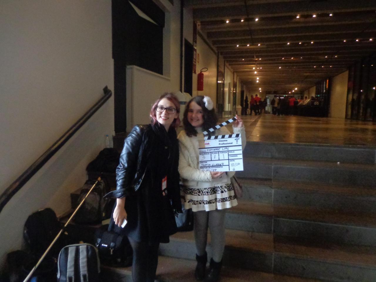Larissa, Islene e Alexandre Oliva no FISL16 / Gravando Documentário